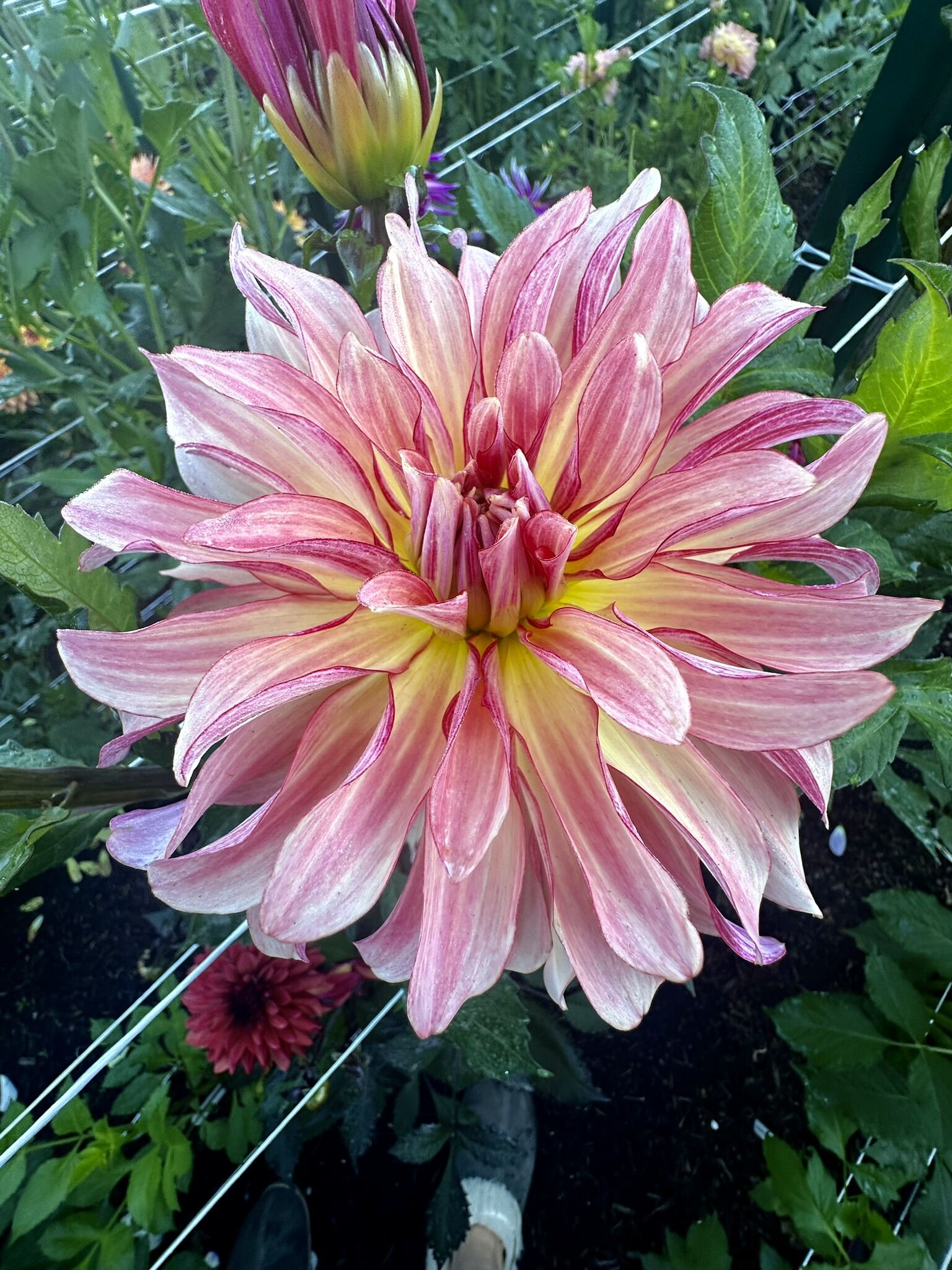 One of our favorites here on the farm. She is dramatic and slightly curly and the color changes from pastels, to raspberry with some creamy texture. New Flowers are darker and with age, they fade. It produces a large amount of flowers that never seem to end!!